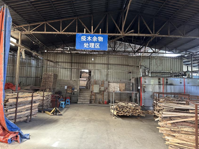 为筑牢松材线虫病害防控防线,公司厂区实行严格分区管理,设有2.5米以上防虫网及天牛诱捕器,配备全程视频监控系统,加工剩余物全部就地焚烧处理,形成从疫木收购、加工、除害到成品销售的全链条管控。